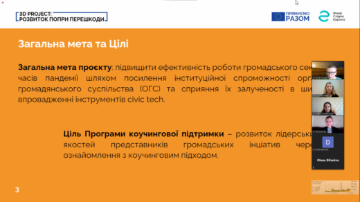 Участь у «Коучинговій програмі для лідерів громадських організацій у часи пандемії»